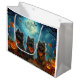 Unleash the spooky spirit with this eerie Halloween design featuring a pack of dogs under a dark, moonlit sky, surrounded by flying bats and glowing pumpkins. Perfect for those who love a touch of frightful fun with their furry friends!