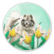 Keeshond in Tulips Painting Cute Original Dog Art Ceramic Knob