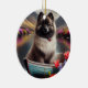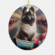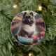 Keeshond on a Paddle: A Scenic Adventure Ceramic Tree Decoration
