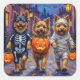 Keeshond Trick-or-Treating in Halloween Costumes Square Sticker