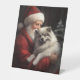 Keeshond With Santa Claus Festive Christmas Pedestal Sign
