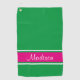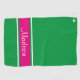 Kelly Green Pink Stripe Script Name Golf Towel
