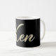 A very beautiful personalized cup / coffee cup / tea cup in whitegold lettering look on black for Ken.