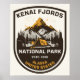 This design features mountains, a moon, stars, trees, a campsite and the text, "Kenai Fjords National Park, Estd. 1980, Alaska, United States."