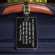 This was purchased as part of a 40th Birthday present for my nephew who is going to Vegas. It is made of high quality, very study and we decided only to put his name on the back of the tag, but you can add a full address if you so wish.