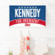 A minimal design featuring curved type with blue and white stars. This simple layout is bold and can be seen when you place it in your front yard. You can change any of the custom text or remove the stars. A design supporting Robert Kennedy's campaign.