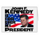 "John F. Kennedy is forever my President" in a bold, patriotic design including the President's portrait backed by the American flag.