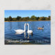 Beautiful two white swans swimming in the round pond in Kensington Gardens Royal Park London UK - photography postcard - Sept 2019 - photo by Anka