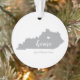A simple ornament with an outline of the state of Kentucky and beautiful lettering for the word "home" placed in the centre. Personalise this ornament by inserting your hometown & customise further by placing the ♥ near your hometown on the Kentucky state image. These are great gifts, keepsakes, and perfect for collections!