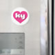This magnet features a vibrant hot pink heart containing the bold, white, rounded lower case letters ky, a playful abbreviation for Kentucky, the bluegrass state.