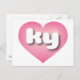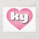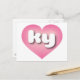 This postcard features a pink heart with a white-washed centre containing the bold, white, rounded lower case letters ky, a playful abbreviation for Kentucky, the bluegrass state. The reverse side of the postcard is blank, awaiting your handwritten sentiments or customised text.