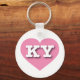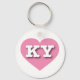 This key chain features a vibrant pink heart containing the bold, white, upper case letters KY, the official abbreviation for Kentucky, the bluegrass state.
