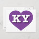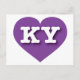 This postcard features a vibrant purple heart containing the bold, white, upper case letters KY, the official abbreviation for Kentucky, the bluegrass state. The reverse side of the card is blank, awaiting your customised text or handwritten sentiments.