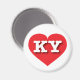 This magnet features a vibrant red heart containing the bold, white, upper case letters KY, the official abbreviation for Kentucky, the bluegrass state.