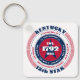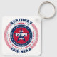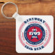 The Kentucky State Keychain has a circular typography design with red, white, and blue colours on a white background. The text includes the state's name, capital, state abbreviation, resident's name, region, time zone, geographic coordinates, the year of its statehood, and the country - The United States of America. Unique patriotic gift idea.