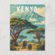 Kenya Illustration Travel Art Vintage Postcard