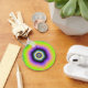 A digital abstract fractal image with a exploding firework design in yellow, violet ,blue and green by Objowl. As well as key chains this design is also available on most other products. If you need help or would like me to make changes to this or any other item email me. obj owl at gmail.com. No obligation just pleased to be of service.