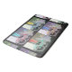 The colourful artwork on this large Bath Mat was made from an original photograph by ZoeSPEAK of a bicycle parked outside a shop in Key West, Florida. Clothing from the shop hangs on the open door behind the bicycle. The photo is done in four colour schemes, red bike, blue bike, green bike and yellow bike, with corresponding clothing colours. The backgrounds are in muted shades of mauve and olive greys, and the overall background is a marbled black.