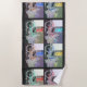 The colourful design by ZoeSPEAK on this Beach Towel was made from Zoe’s original photograph of a bicycle parked outside a shop in Key West, Florida. Clothing from the shop hangs on the open door behind the bicycle. The photo is done in four colour schemes, red bike, blue bike, green bike and yellow bike, with corresponding clothing colours. The backgrounds are in muted shades of mauve and olive greys, and the overall background is a marbled black.