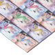 The colourful pattern on this Table Runner was made from an original photograph of a bicycle parked along a street in Key West, Florida. The bicycle has a basket in front of the handlebars, and serves as classic Key West transportation. The photo is done in four colour schemes, red bike, blue bike, green bike and yellow bike, with backgrounds in muted shades of peach, mauve, aqua and blue.