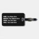 This was purchased as part of a 40th Birthday present for my nephew who is going to Vegas. It is made of high quality, very study and we decided only to put his name on the back of the tag, but you can add a full address if you so wish.