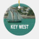 Key West Florida Keys photo of a sailboat passing on the ocean with houses and palm trees in the background. Celebrate happy memories of your tropical vacation or a place you love. For Christmas ornament or anytime.