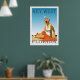 A retro poster that never was until now. A creative redo of an old poster that should have been. Florida beach in retro style from the art deco era. Bright colours with a woman on the beach under a blue sky.