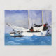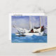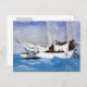 A fine art postcard with the watercolor painting, Key West, Hauling Anchor (1903), by the American artist Winslow Homer (1836-1910), an American painter from the realism movement. This postcard depicts a sailboat gracefully gliding through the vibrant blue waters along the coast of Key West, Florida.