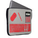 This unusual and quirky Laptop Case features a computer keyboard with red keys and white lettering, a red mouse, calculator with red keys and white lettering and matching red pen. The background and nameplate text can be changed to suit your own requirements.