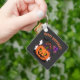 Cartoon pumpkin birthday cake with skull balloons, ghosts in party hats, creepy candles, and bats for a spooky Halloween birthday.