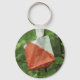 Printed on one side of a standard button that is securely attached to a sturdy keychain