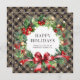 Khaki Buffalo Plaid Stars Holly Berries Business Holiday Card