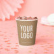 Easily personalize our 8 ounce paper cups with your company logo and custom text. These FDA approved paper cups are for cold and hot drinks. The dimensions for the 8 oz cups are 3.75 inch x 3 inch. Available without or with lids. Also available in 12 oz size. Designed in khaki and other colors (all colors are customizable). Sold in sets of 8. Low minimum order quantity and no setup fee. Printed in the U.S.A.