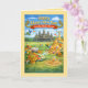 Celebrate the beauty and tradition of Cambodian New Year with this vibrant greeting card inspired by the iconic Angkor Wat. The design features festive sand stupas adorned with colorful banners, traditional offerings of fruit and sweets, blooming flowers, and playful birds beneath bright blue skies. The joyful greeting “Happy Khmer New Year” and “Sousdey Chnam Thmey” appear boldly across the top, capturing the warmth, renewal, and cultural richness of this special holiday.