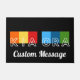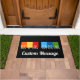 Bright, colourful welcome mat for your doorway or entrance. This special and unique doormat has a black backdrop, with a design featuring the Kiwi phrase "Kia ora" as well as text which can be customised or removed as suits. "Kia ora" comes from the language of Māori, the indigenous first nation people of Aotearoa New Zealand. Kiwis use it as a greeting, welcoming, and saying hello, though it can also be used to show appreciation and thanks and is used throughout NZ.