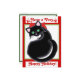 Kiara is a sleek black cartoon cat with big blue eyes and a red bow that's ready for the Holidays! Kiara's eyes and bows can be different colours if you choose Customise it! The background can be changed.