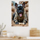 This combat-ready French Bulldog means business. Corporal Kibble is dressed in full desert camo gear, kneepads snug, tactical vest loaded, and night-vision goggles resting on his furry forehead. He’s crouched behind sandbags, clutching a rubber bone like it’s the key to victory. With his tongue out and eyes sharp, this little warrior is all bark and all bite. Perfect for man caves, barracks, or anyone who loves dogs with attitude and gear.