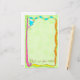 “Kick up your Heels” and enjoy the day. This stationery makes a delightful way to correspond and brighten someone’s day. Hand drawn art embellishes this collection with a tropical blue drink with flower accents and the words “Kick Up Your Heels”. A whimsy multi-colour border completes the design on a green background. Fully customisable to add printed messages!