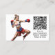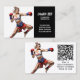 The inclusion of a QR code on the business card adds a modern and tech-savvy touch, allowing potential clients to easily access more information about the kickboxing instructor's services, class schedules, or contact details with a simple scan using their smartphone.