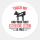 Kickboxer design with high kick illustration and saying: Touch Me And Your First Kickboxing Lesson Is Free. Gift for kick boxers who practice mixed martial arts, self defence, or boxing.