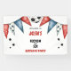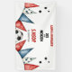 Kid's birthday party banner. 6th birthday. Kickin it at six. Soccer. Red, blue, black and white.