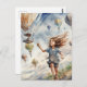 kid flying kites postcard
