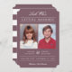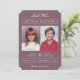 Send modern style "old school photo" save the dates, using your childhood photos! The background colour can be easily customised to any colour you'd like - on both the front and back. Shown: medium mauve purple. Modern white stripes design on the back.
