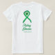The green ribbon is used to both show awareness for kidney disease and for organ transplant or tissue donation awareness. There are many kinds of kidney disease including chronic kidney disease (CKD), diabetic kidney disease, IgA nephropathy, polycystic kidney disease (PKD), simple kidney cysts, kidney infection (pyelonephritis), and kidney stones. Customise this awareness ribbon t-shirt apparel with a personal awareness message. See more of our art at AwarenessGallery.com.