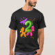 I give wanted to give this a 4 instead of a 5 because these Basic DARK T0shirts run unexpectedly SLIM or Narrow. Which is great if you do not have a potbelly, but I have a paunch. It isn't the shirt's fault that I've got a beer belly. The design and shirt itself is a quality cotton shirt. The color is more of a deep purple, but still a very pretty color. The Basic DARK T-shirts run a bit SLIMMER than the Basic Ts. The neck is a fraction narrower (or seems to be narrower) also. I'm a paunchy middle-aged woman and my neck is 12 inches (31cm) thick and the neckline fell about the same as in the photo of the man, and I had the desire to tug it a bit. So if you're a thick necked man or like loose shirts, be aware these are slimmer shirts. Once I get rid of my lockdown paunch it'll look great. The shirt washed well in cold water with no apparent bleeding. We don't have a dryer, so it hung dry. Did not shrink. Love the colors and the design. The design looks smaller on my shirt than it does on the model on-line. But still, it looks good on the shirt. The printing looks as it does on the model, just the size seems fractionally smaller. Washed garment in cold water, hung dry and design appeared unaffected.