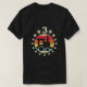 I give wanted to give this a 4 instead of a 5 because these Basic DARK T0shirts run unexpectedly SLIM or Narrow. Which is great if you do not have a potbelly, but I have a paunch. It isn't the shirt's fault that I've got a beer belly. The design and shirt itself is a quality cotton shirt. The color is more of a deep purple, but still a very pretty color. The Basic DARK T-shirts run a bit SLIMMER than the Basic Ts. The neck is a fraction narrower (or seems to be narrower) also. I'm a paunchy middle-aged woman and my neck is 12 inches (31cm) thick and the neckline fell about the same as in the photo of the man, and I had the desire to tug it a bit. So if you're a thick necked man or like loose shirts, be aware these are slimmer shirts. Once I get rid of my lockdown paunch it'll look great. The shirt washed well in cold water with no apparent bleeding. We don't have a dryer, so it hung dry. Did not shrink. Love the colors and the design. The design looks smaller on my shirt than it does on the model on-line. But still, it looks good on the shirt. The printing looks as it does on the model, just the size seems fractionally smaller. Washed garment in cold water, hung dry and design appeared unaffected.
