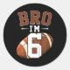 Kids 6th Birthday Football Player Bro I'm 6 Years Classic Round Sticker