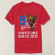 I give wanted to give this a 4 instead of a 5 because these Basic DARK T0shirts run unexpectedly SLIM or Narrow. Which is great if you do not have a potbelly, but I have a paunch. It isn't the shirt's fault that I've got a beer belly. The design and shirt itself is a quality cotton shirt. The color is more of a deep purple, but still a very pretty color. The Basic DARK T-shirts run a bit SLIMMER than the Basic Ts. The neck is a fraction narrower (or seems to be narrower) also. I'm a paunchy middle-aged woman and my neck is 12 inches (31cm) thick and the neckline fell about the same as in the photo of the man, and I had the desire to tug it a bit. So if you're a thick necked man or like loose shirts, be aware these are slimmer shirts. Once I get rid of my lockdown paunch it'll look great. The shirt washed well in cold water with no apparent bleeding. We don't have a dryer, so it hung dry. Did not shrink. Love the colors and the design. The design looks smaller on my shirt than it does on the model on-line. But still, it looks good on the shirt. The printing looks as it does on the model, just the size seems fractionally smaller. Washed garment in cold water, hung dry and design appeared unaffected.