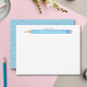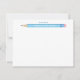 Kid's 'A Note From' flat card featuring a hand drawn pencil. Within the pencil is where the note card can be personalised. The colours are shades of blue with a splash of pink for the pencil eraser. This note card is ideal as a thank you card or a come to my party card or to write a simple hello. These cute personalised note cards will help encourage your little one with their handwriting skills.
