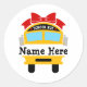 Kids Back to School Bus Personalise Name Classic R Classic Round Sticker